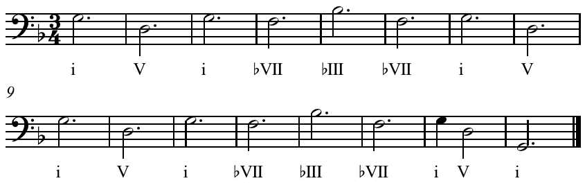 i-V-i-♭VII-III-♭VII-i-V-i.