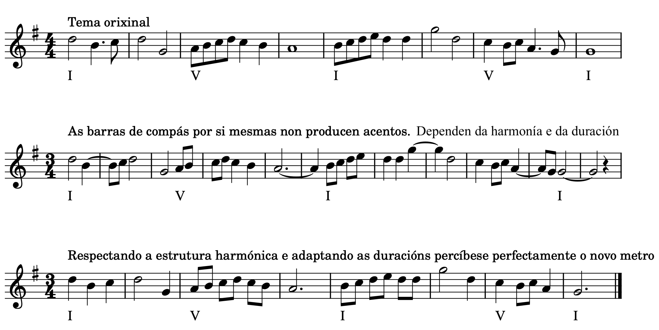 Non se pode sinxelamente cambiar as barras de compás e manter a melodía. A acentuación de compás depende nunha grande medida do ritmo harmónico e tamén das duracións das figuras.