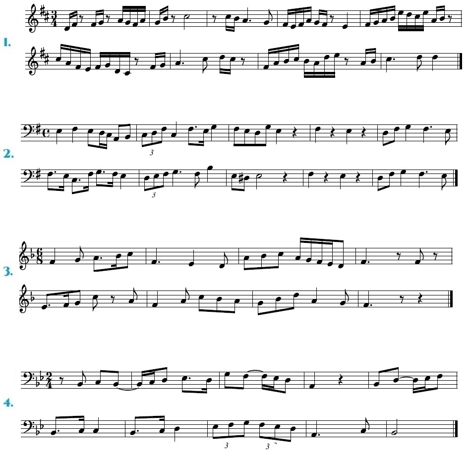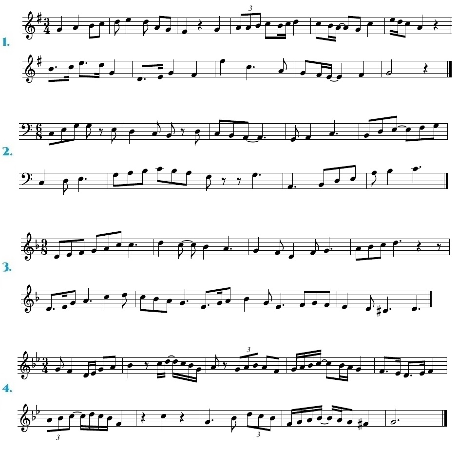 Imos repasar un pouquiño o traballado no curso anterior e serviranos como quecemento para as próximas unidades. Empregaremos os compases que coñecemos e as claves de Sol e Fa en 4ª.