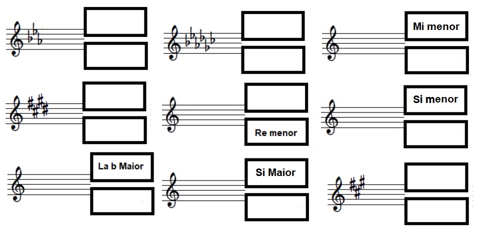 Para os alumnos/as que aínda teñan dúbidas ou para aqueles que queren repasar as tonalidades e os seus relativos, imos coller a libreta pautada e completar o que segue. Podedes traballar en grupos de 2 para poder ir corrixindo os erros e detectando as posibles dúbidas.
