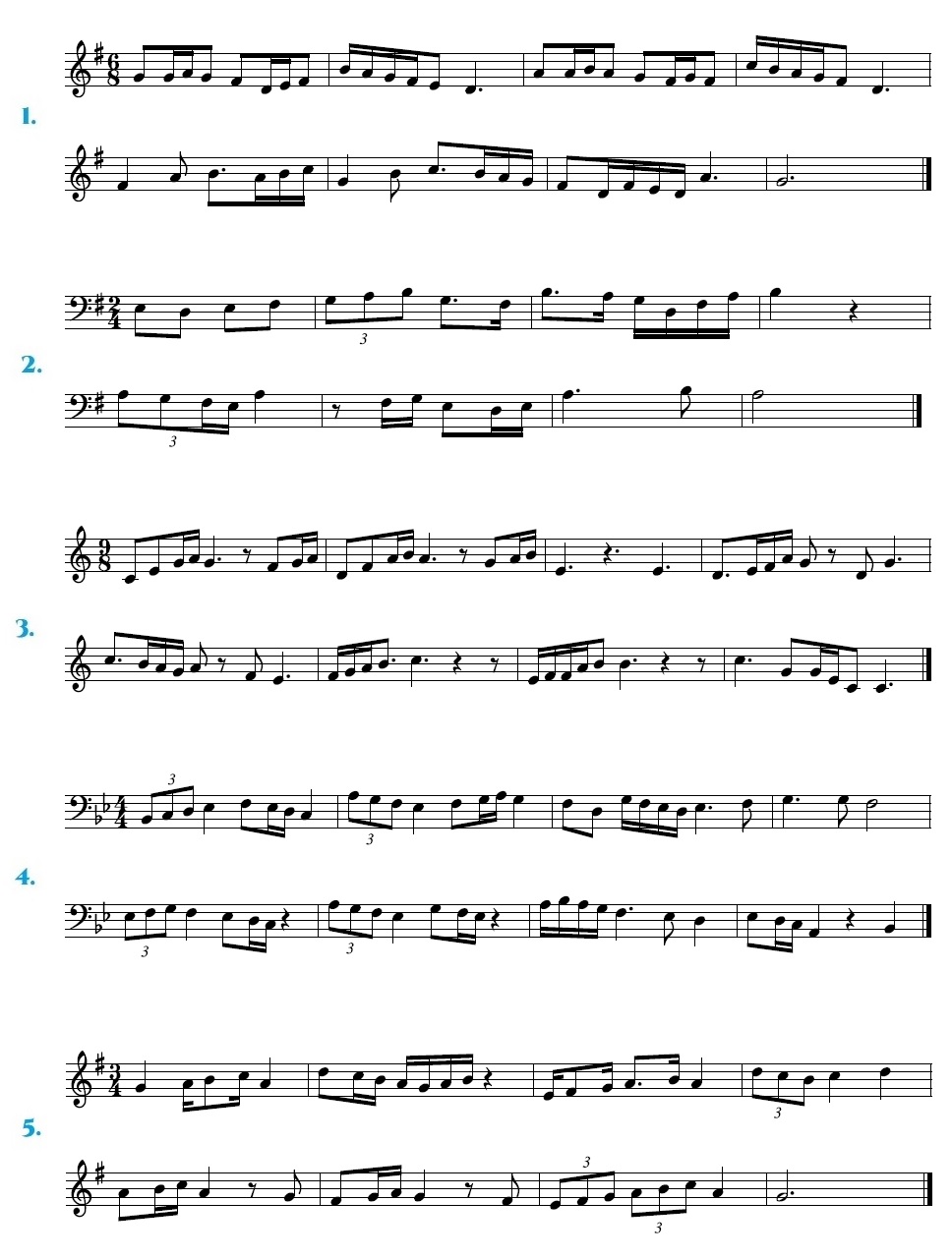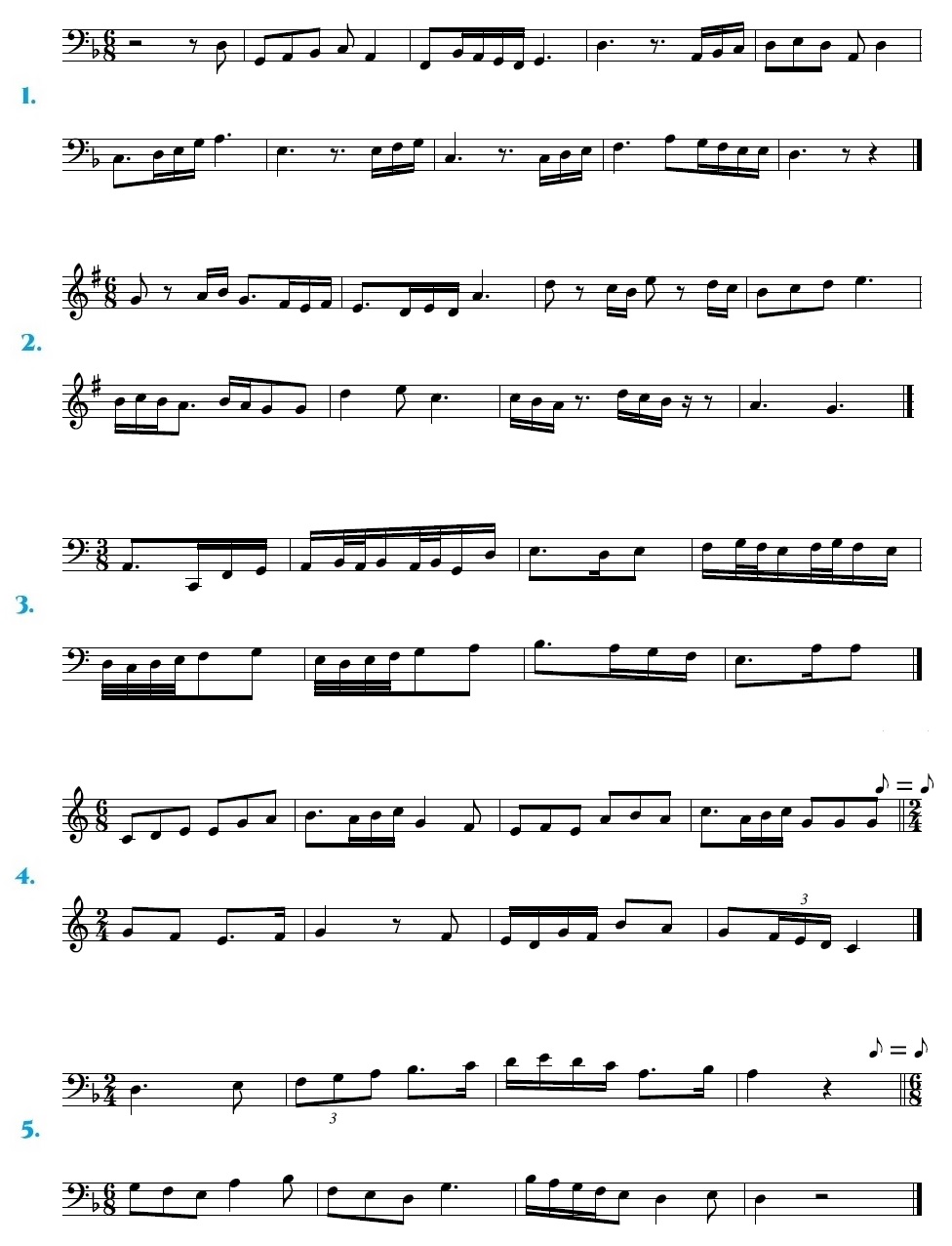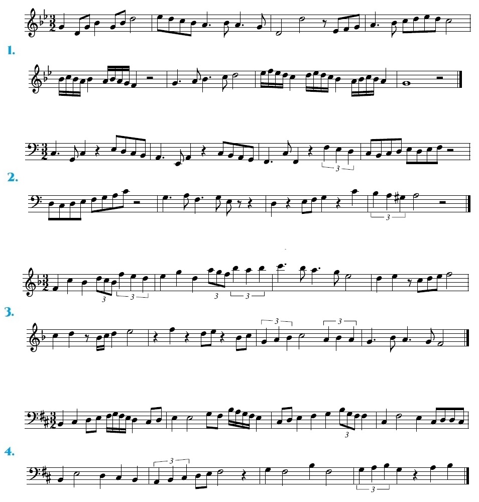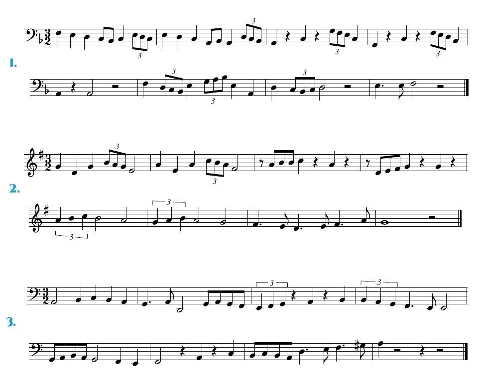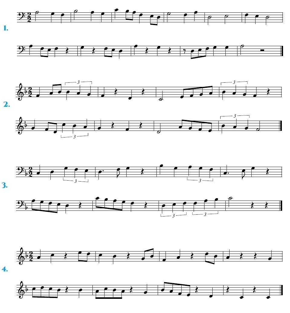 Comezamos con exercicios en 2/2, despois 3/2 e por último 4/2, nas claves de Sol e Fa. E por último, exercicios de repaso de todo o traballado ata agora. Os exercicios van aumentando de dificultade. Practicádeos nesa orde.