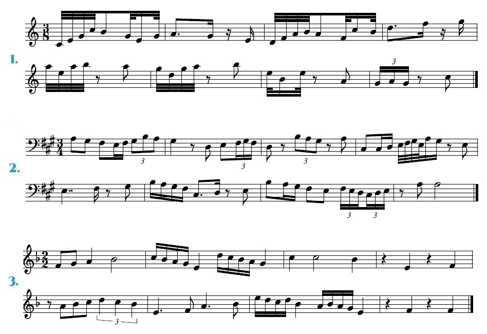 Imos estudar os seguintes exercicios. Se tendes dúbidas, volvedes ver os vídeos. Lembrade que neste caso o metrónomo só poderiades empregalo en subdivisión, non marcando o pulso!