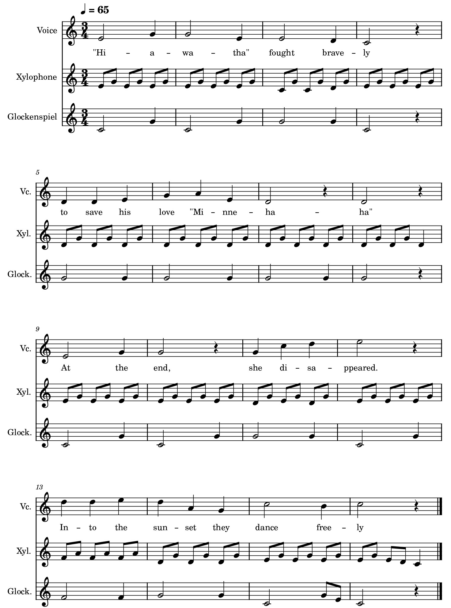 RecorderYou have the video to follow the arrangement of the Symphony No. 9 in E minor (From the New World) and the score for recorder, xylophone and glockenspiel in the first tab. In the second tab you can find the score for marimba, xylophone and glockenspiel score and finally the score for voice, xylophone and glockenspiel. Your teacher will tell you if all students play the same instruments or you can use mixed instruments and voice. You can download the score by clicking on the previous intrument names. Created with Musescore (CC BY-NC-SA)