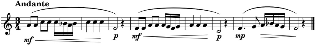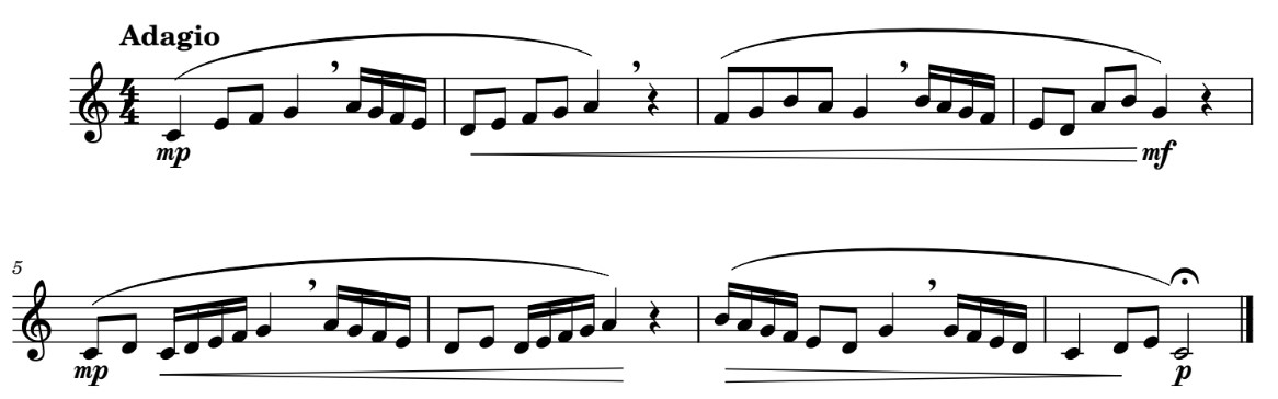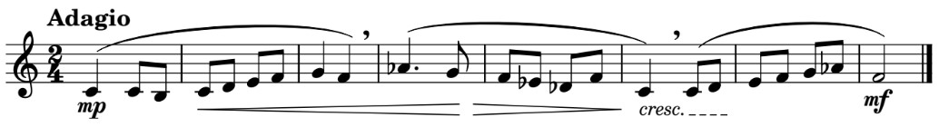 Here we are going to practise all the new symbols we have studied in this unit: flat, sharp, crescendo, decrescendo, dot, etc. Although they are played with different instruments, you can use your recorders to perform them.