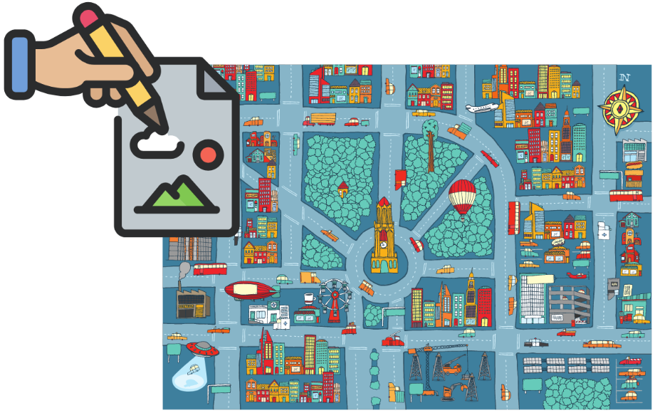Now design a map of your own town or an invented town. It should include at least 12 words from the vocabulary lists above. (shops and places in town)