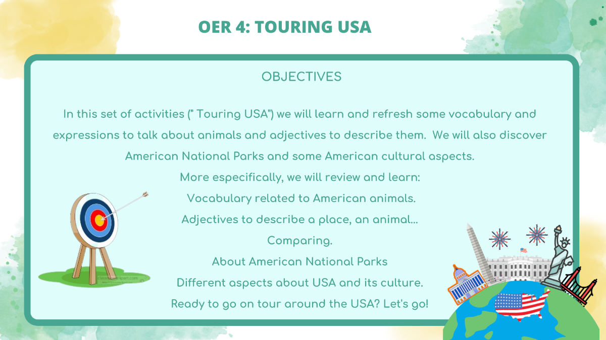 In this OER we will be travelling to United States to discover their National Parks system, the animals you can find across the country and some American cultural aspects.