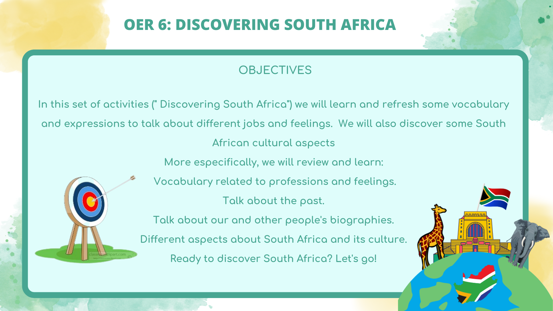In this OER we will be travelling to South Africa to learn about their culture, daily routines and special occasions.