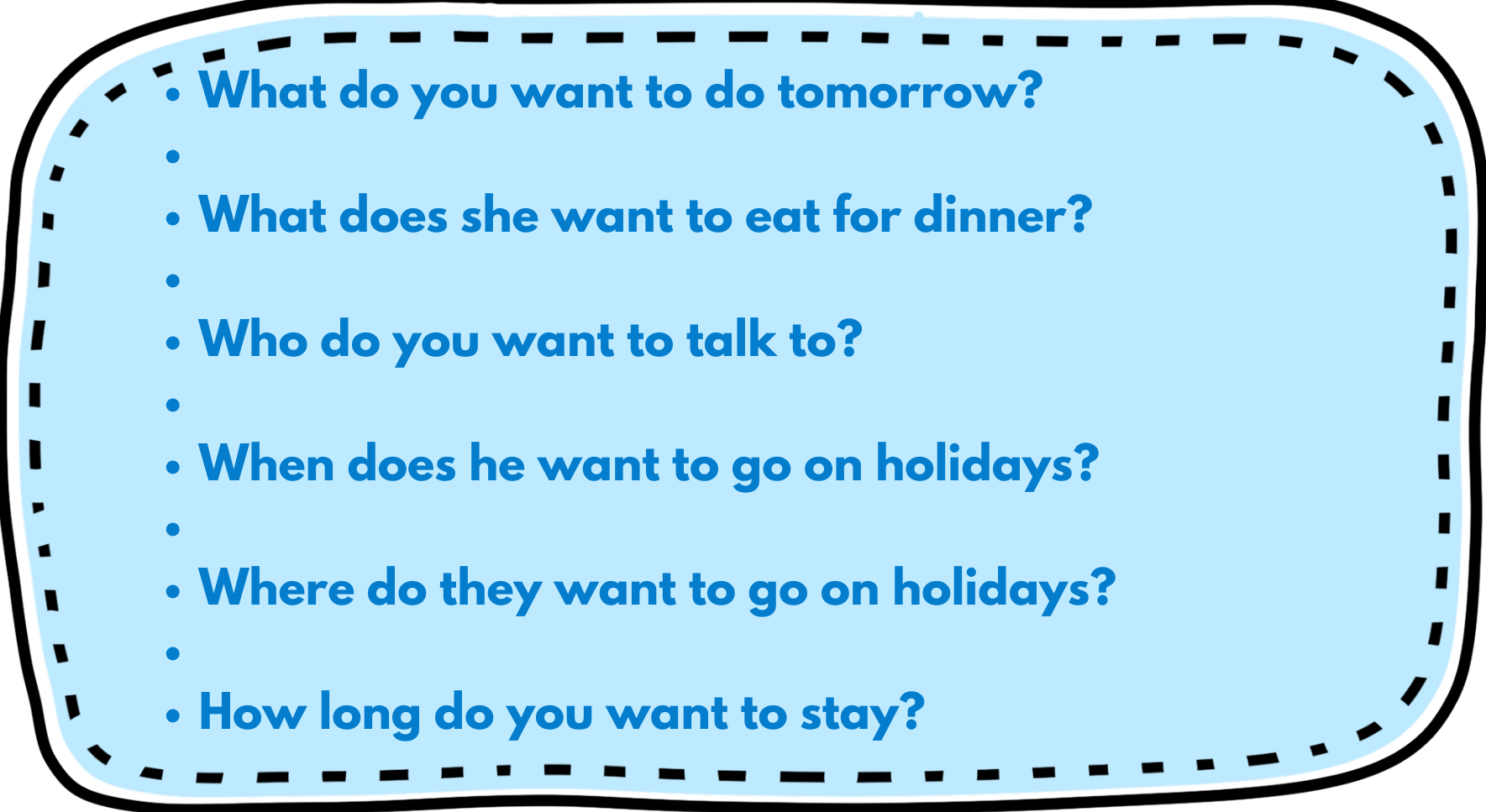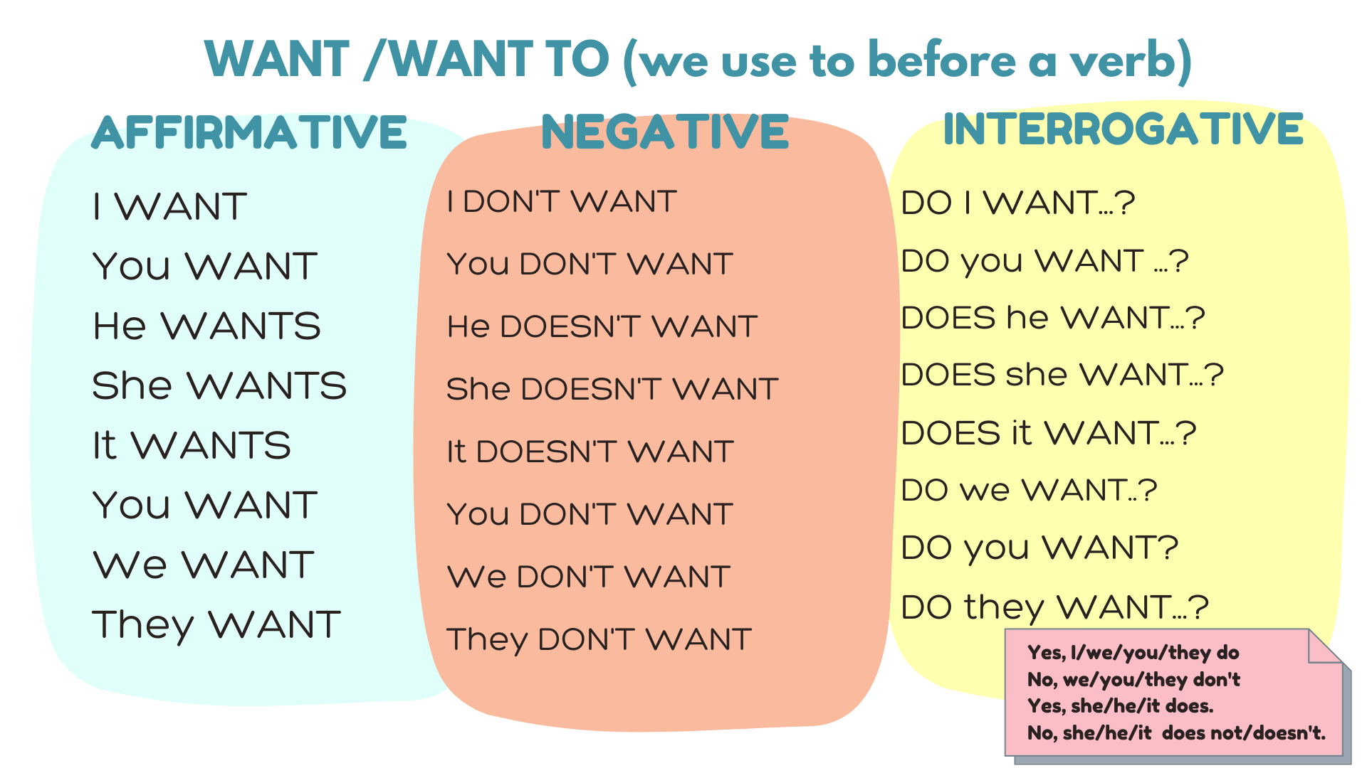 We use the verb "WANT" to express wishes or plans. When it goes before a verb we use "want to".