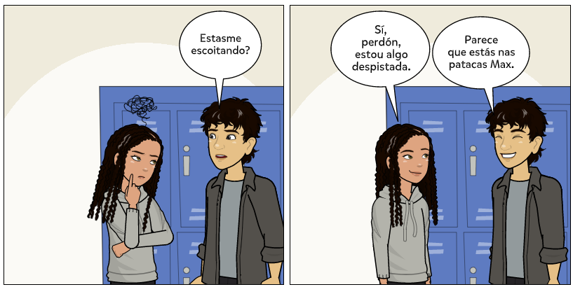 PATACAS ESTAR NAS PATACAS Significado: Estar distraído, non estar atento. Exemplo: Mentres a profesora explicaba ti nas patacas. COLLER NAS PATACAS Significado: Pillar a alguén facendo algo. Exemplo: Entraron nunha casa a roubar e colléronos nas patacas.