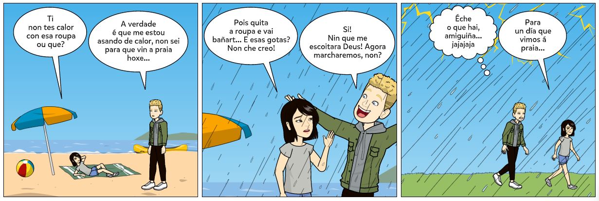 Exemplos: Estou moi enfadado contigo e cando te pille non vas levar frío.