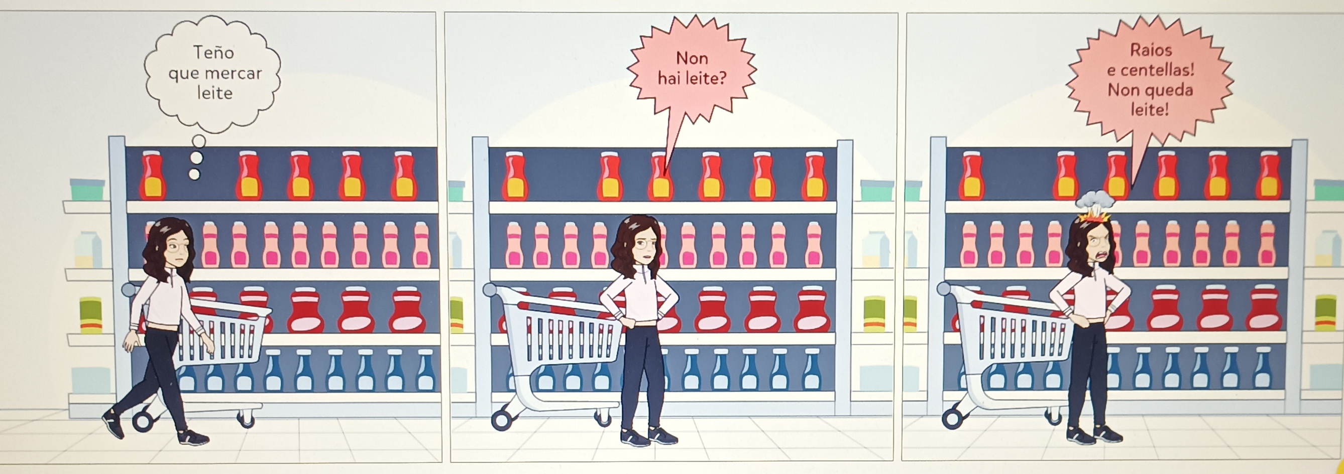 Exemplo; Tan mal lle pareceu o que dixo que saíu pola porta da súa casa botando raios e centellas.