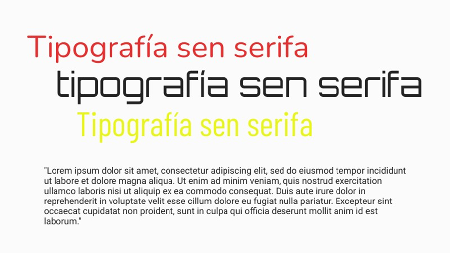Algúns exemplos de tipografía sen serifa son Arial, Futura, Helvética, Gotham, Verdana.