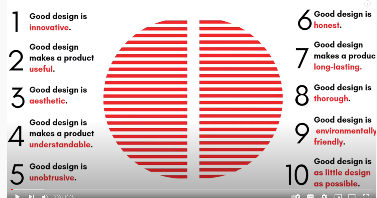 Antes de comezar cos elementos básicos do deseño imos ver consellos básicos sobre o bo deseño, baseados nos principios de Dieter Rams, na canle Collage de Ideas da deseñadora Irene Ramos: