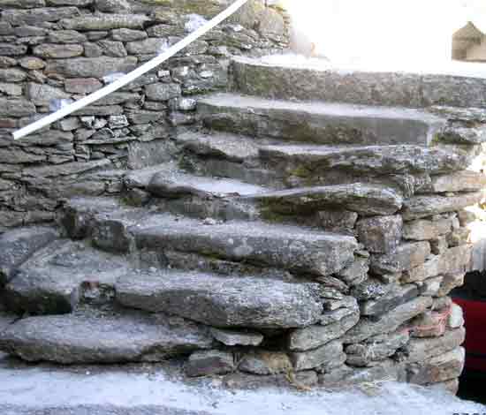 Escaleira: (lat. scalaria). Construción formada por unha serie de superficies planas ou chanzos situados en niveis sucesivos, que serve para subir e baixar. Cast.: escalera, Fr.: l’escalier, In.: stair. |