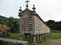 3- Dúas paredes lonxitudinais chamadas costais e dúas transversais chamadas cabaceiras ou penais. Nas esquinas leva catro columnas que reforzan o conxunto, de madeira ou de pedra (as padieiras ou linteis), e os pinches;