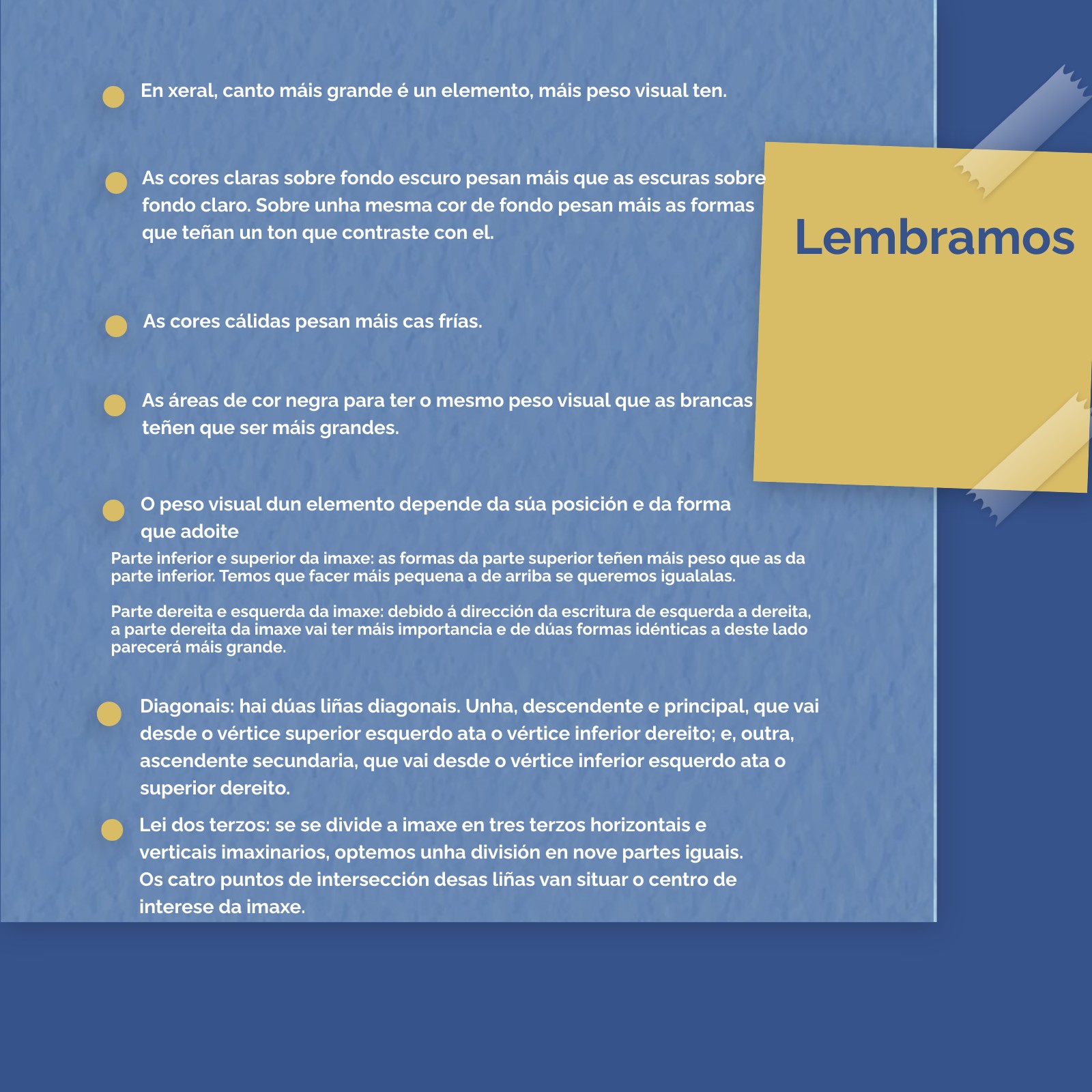 - Peso visual de cada elemento da composición.