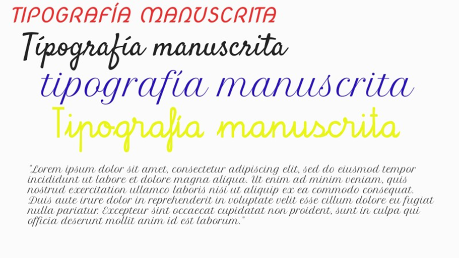 Exemplos de tipografías manuscritas son Beckham Script , Parisienne, kikuri, Handster, Lote Santos...