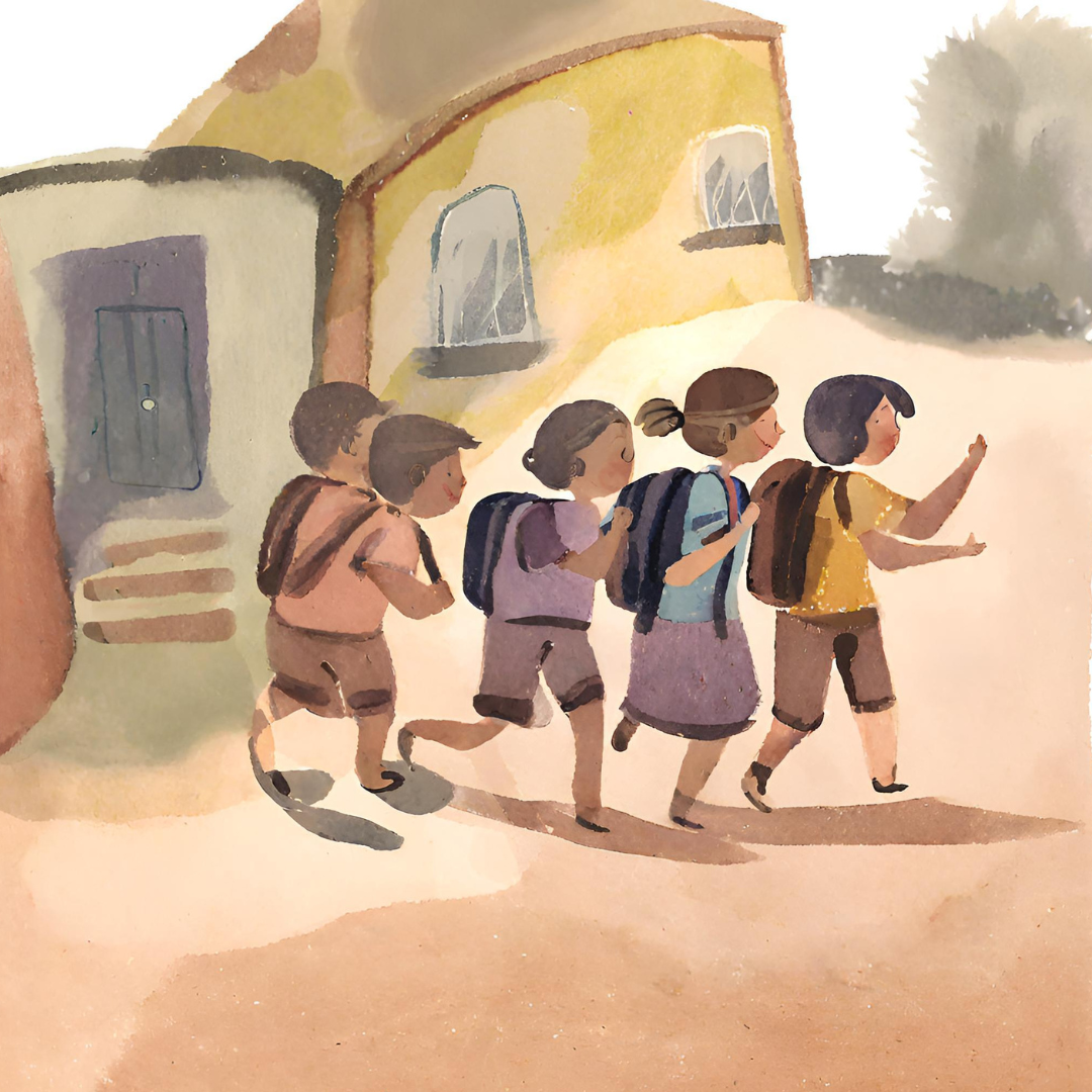 Kids going to school drawing (CC BY-NC-SA)