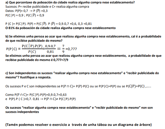 c) Son independentes os sucesos “realizar algunha compra nese establecemento” e “recibir publicidade do mesmo”? Xustifique a resposta.