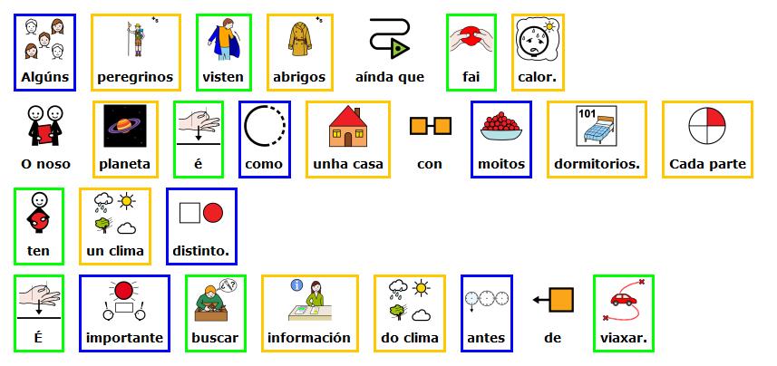 - Por iso é importante coñecer, ademais da predicción do tempo, o tipo de clima dos lugares que visitamos. Se souberan que en Galicia temos un clima temperado non vestirían como esquimós - comenta a mestra-. A Terra é como unha casa con diferentes habitacións, e cada unha ten o seu propio clima e unha paisaxe característica. O clima é tan importante que inflúe no tipo de animais e plantas que poden vivir nun lugar.