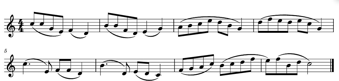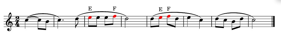 1- Look at the scores, sing the notes aloud and at the same time mark the corresponding time signature beats with your hand. Pay attention to high E and high F and revise the other notes you studied in previous units.