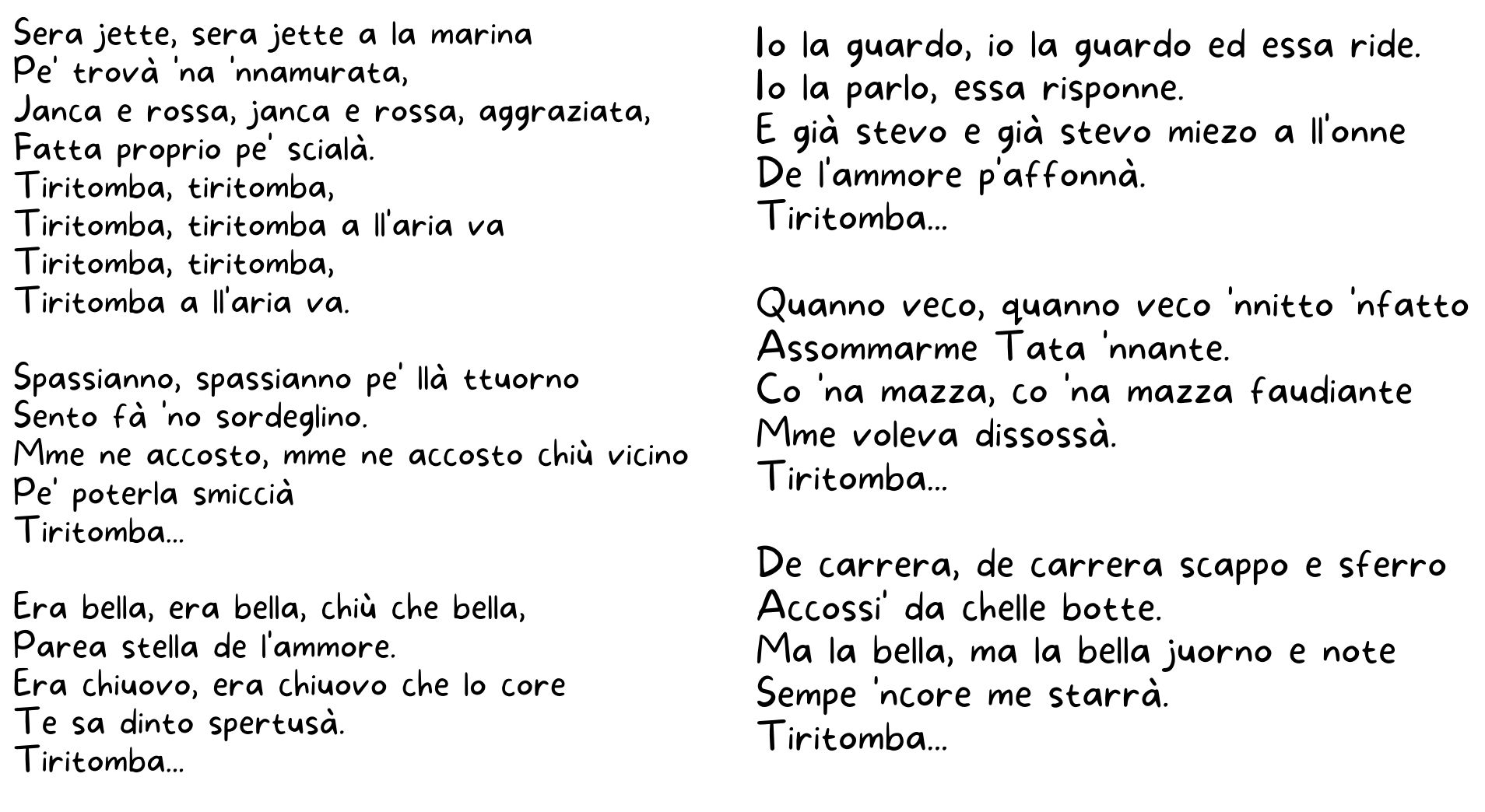 Little do we know about the song Tiritomba. It is believed to have been created in the early 1800s somewhere in Northern Italy or middle Europe though some others consider it has got a Neapolitan origin. In 1930, a German tenor called Joseph Schmidt recorded a version and in 1956, Margot Eschen, a German singer, had a number one hit with the song. So it is not weird that it is widely known in Germany and other countries such as Belgium and the Netherlands.