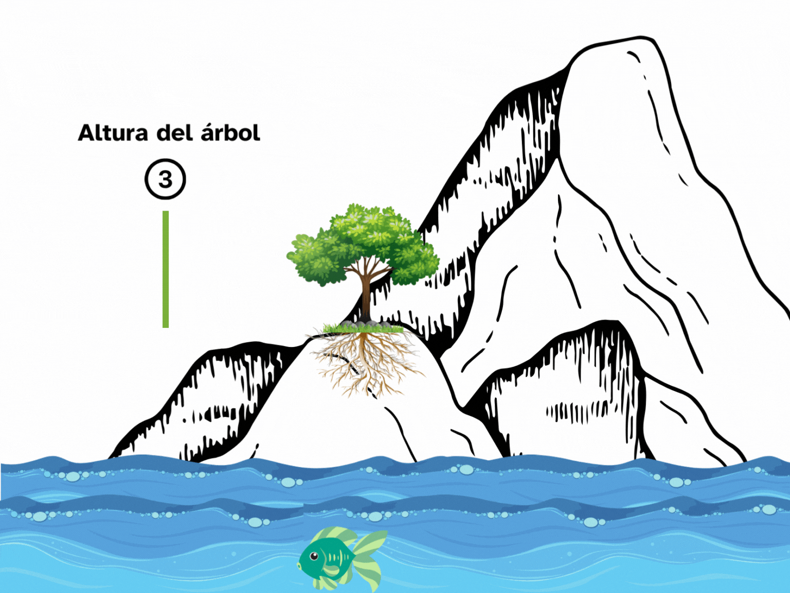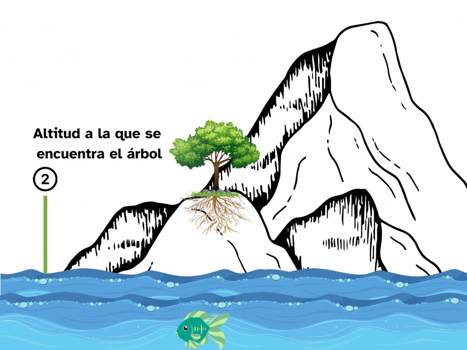 La altitud de un árbol (en este caso no coincide con la altura) se mide desde el mar hasta la base del árbol. Esta medida se indica usando valores positivos.