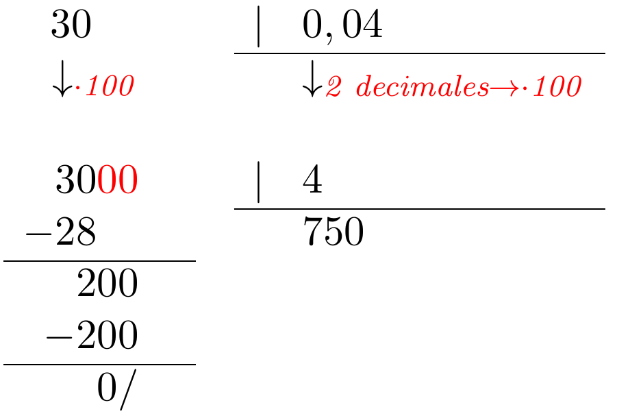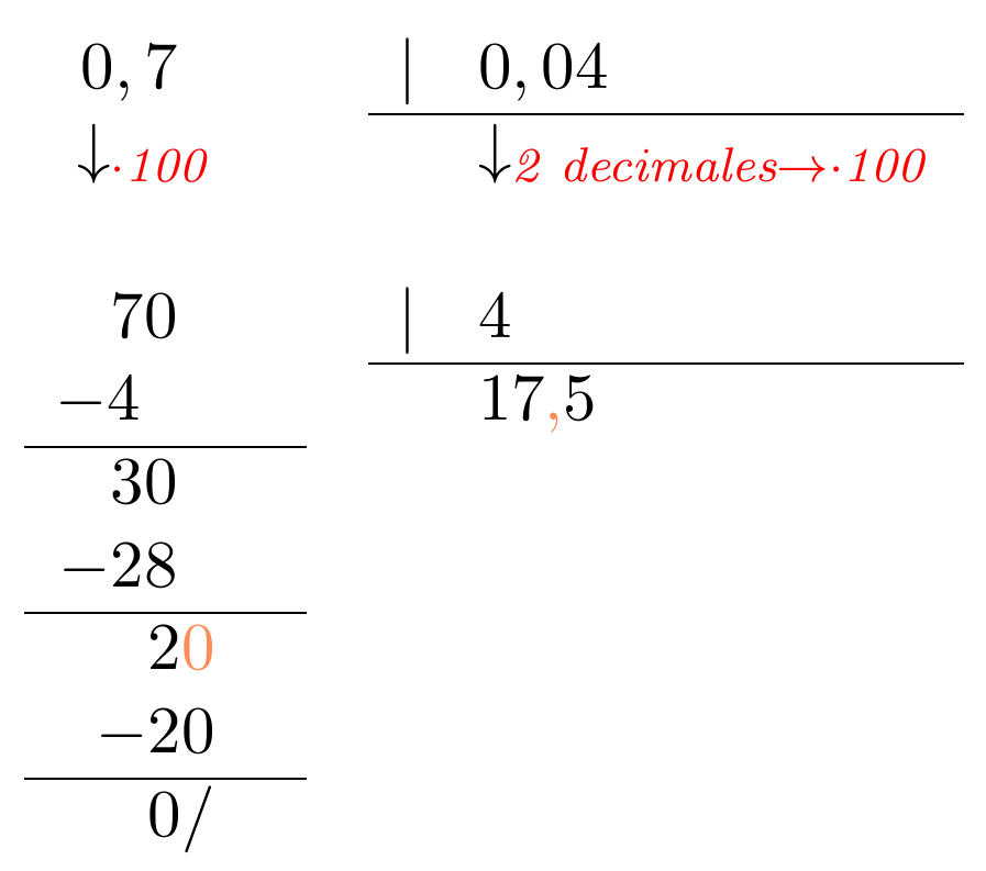 Del mismo modo, cuando multiplicamos por 0,1 ; por 0,01; por 0,001;... lo que hacemos es desplazar la coma hacia la izquierda tantos lugares como decimales tengamos. Así pues, si multiplicamos por 0,1 desplazamos la coma hacia la izquierda un lugar, si multiplicamos por 0,01 desplazamos la coma dos lugares, y así sucesivamente. Si es necesario, se añaden ceros a la izquierda.