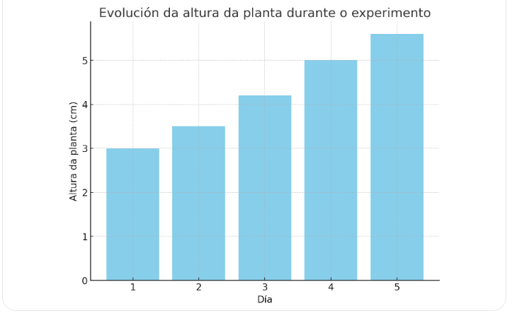 - Engadide un título ao diagrama de barras, como "Evolución da altura da planta durante o experimento".