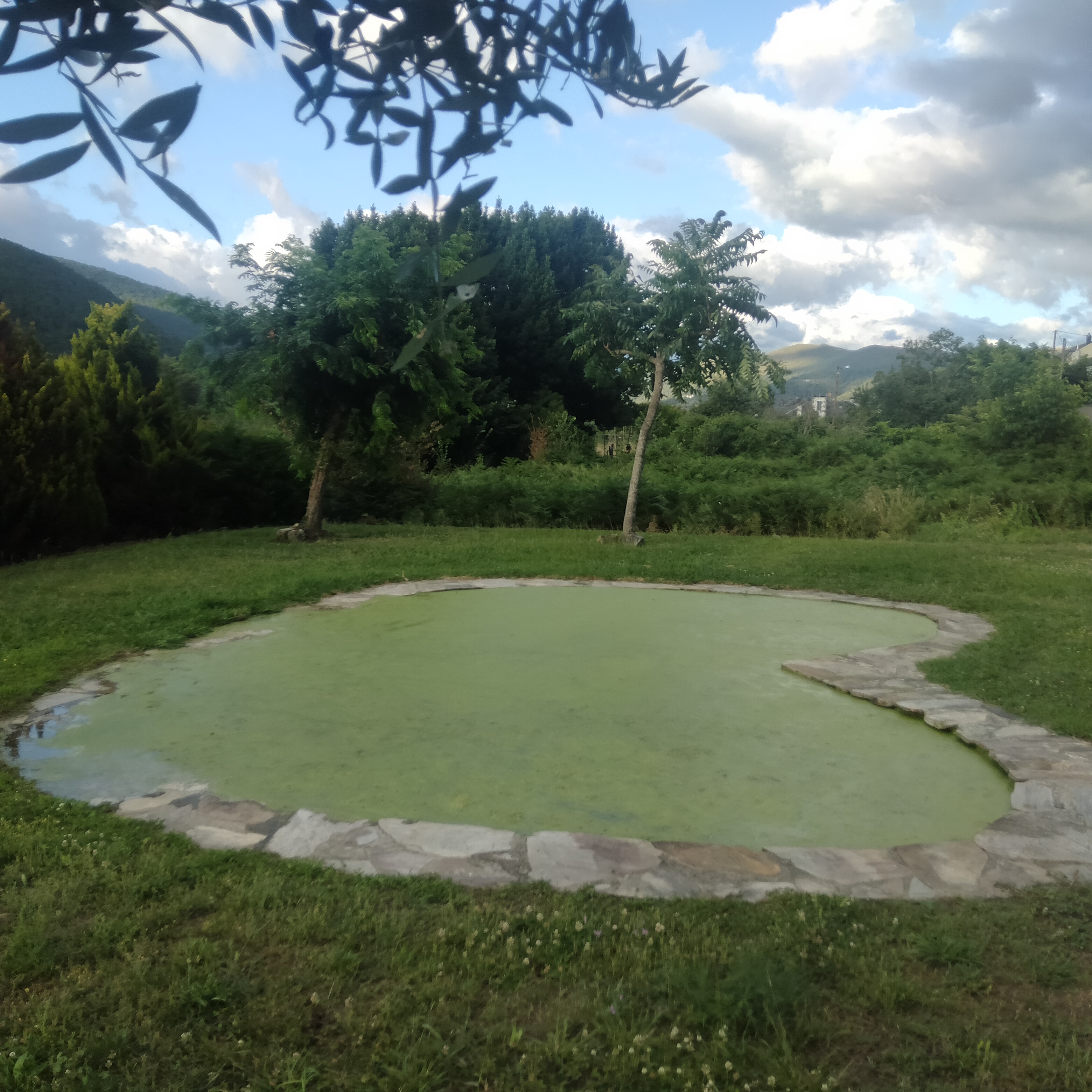 Nunha localidade do Xeoparque Montañas do Courel, detectouse un tipo de contaminación moi visible nun estanque, aínda sen coñecer as súas causas. Na fotografía pode observarse o fenómeno. Esta mañá, un experto en ecoloxía, vinculado á universidade, desprazouse ao lugar e declarou aos medios de comunicación que, na súa opinión, a contaminación podería deberse a un vertido dunha substancia rica en fósforo realizado por algún veciño.