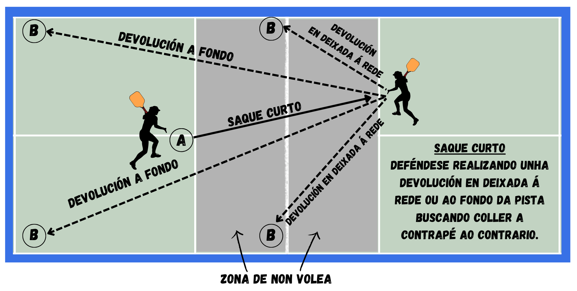 Búscase enviar a bóla ás 4 esquinas do campo rival. O obxectivo de enviala a esas zonas é conseguir que o contrario realice desprazamentos longos e que non chegue a tempo para golpear correctamente.