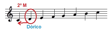 Por exemplo, se queremos saber como é a escala Fa Dórico, seguiremos os pasos:
