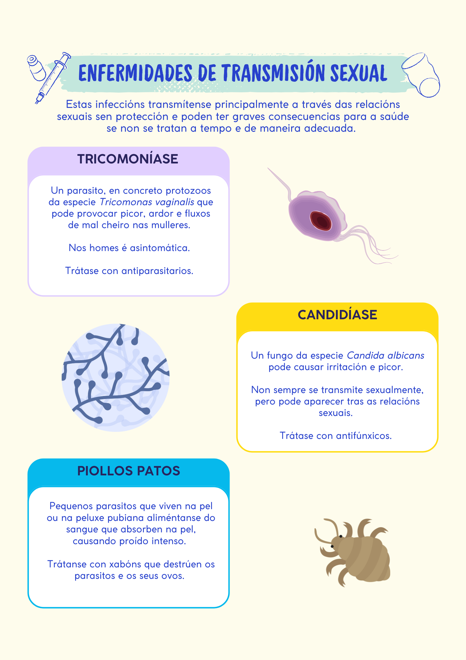Un parasito, en concreto protozoos da especie Tricomonas vaginalis que pode provocar picor, ardor e fluxos de mal cheiro nas mulleres, mentres que nos homes é asintomática.