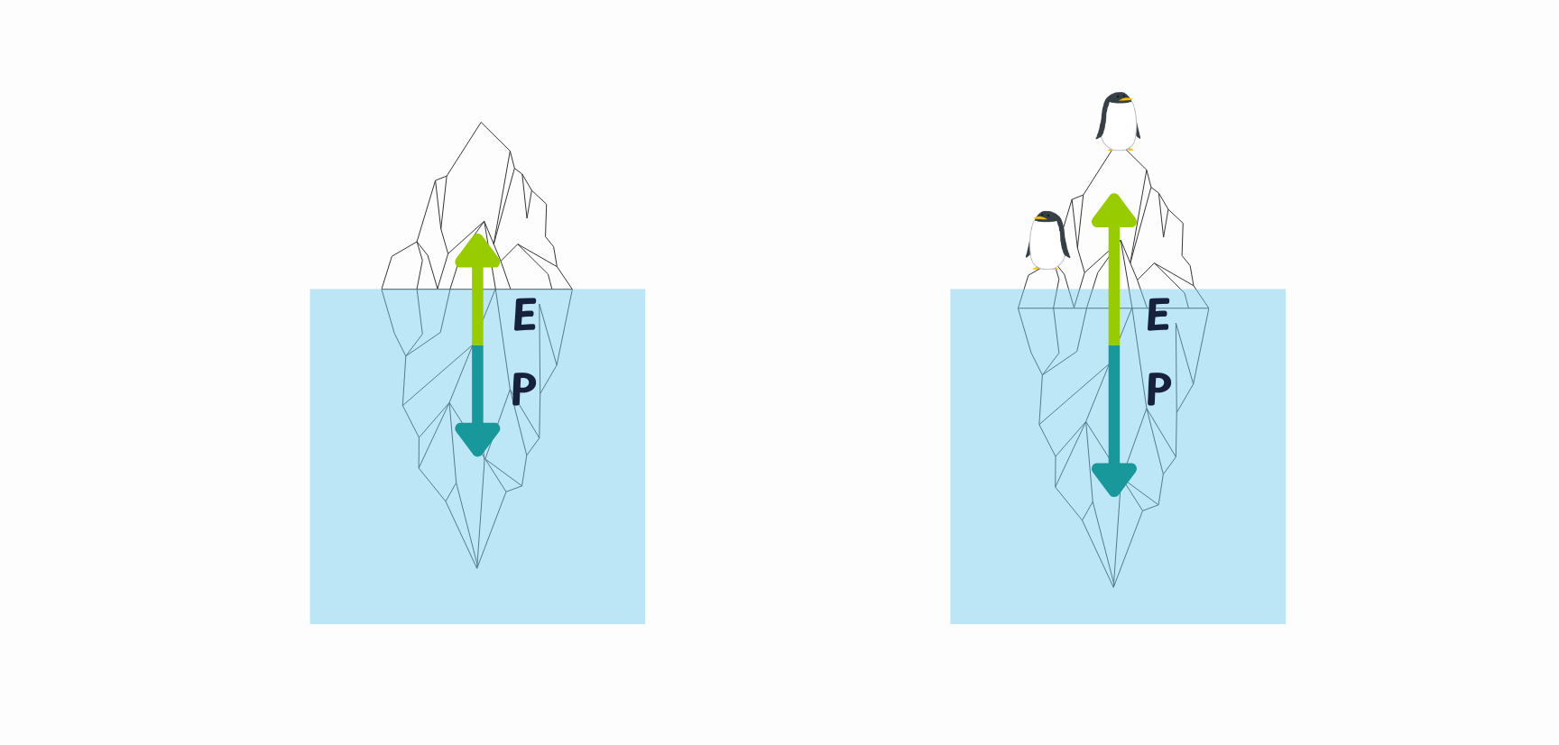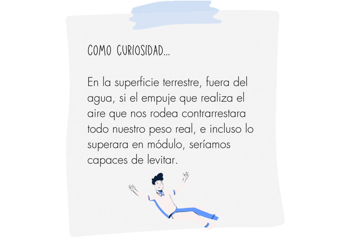 En la siguiente imagen se representan las fuerzas principales que intervienen durante el buceo. Explóralas en pulsando en las flechas.