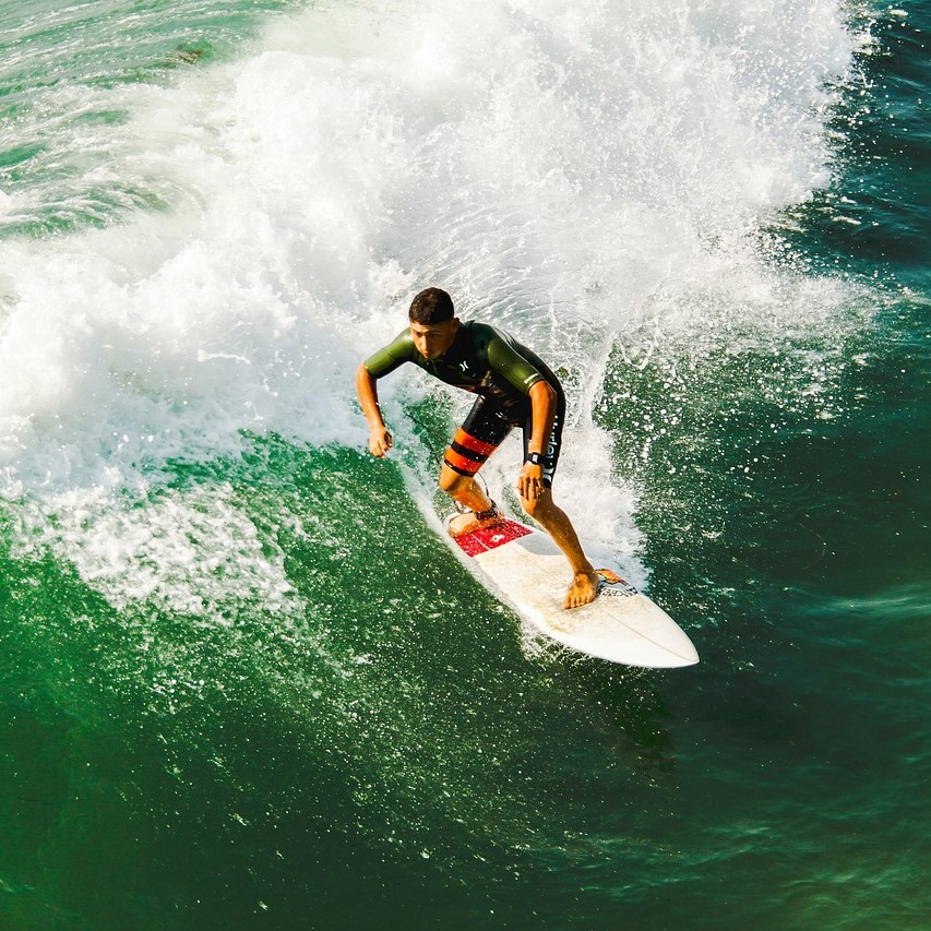 La fuerza de propulsión se crea por la acción de las aletas. Por la tercera ley de Newton (acción y reacción), la fuerza que el buzo ejerce sobre el agua con las aletas hacia atrás genera una fuerza de propulsión hacia delante, en este caso hacia la derecha, que es la dirección en la que el buzo se mueve. Para que se produzca el movimiento, la fuerza de propulsión debe ser mayor que la fuerza de rozamiento.