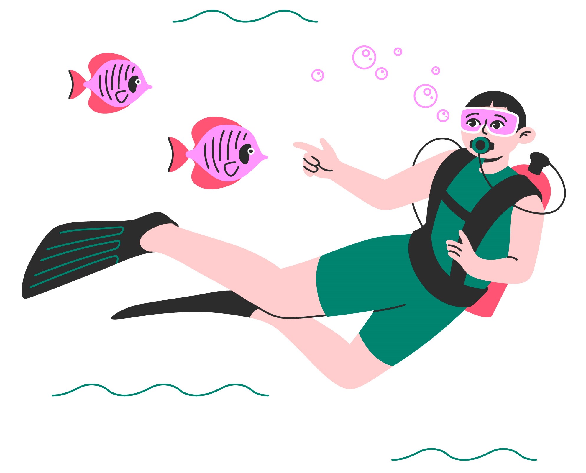 A medida que un buceador desciende en el agua, la presión sobre él aumenta debido a que el peso de la columna de agua encima de él se incrementa. En estas profundidades, podemos considerar que la temperatura del aire que respira es prácticamente constante, por lo que el comportamiento de ese gas se puede describir mediante la ley de Boyle-Mariotte.