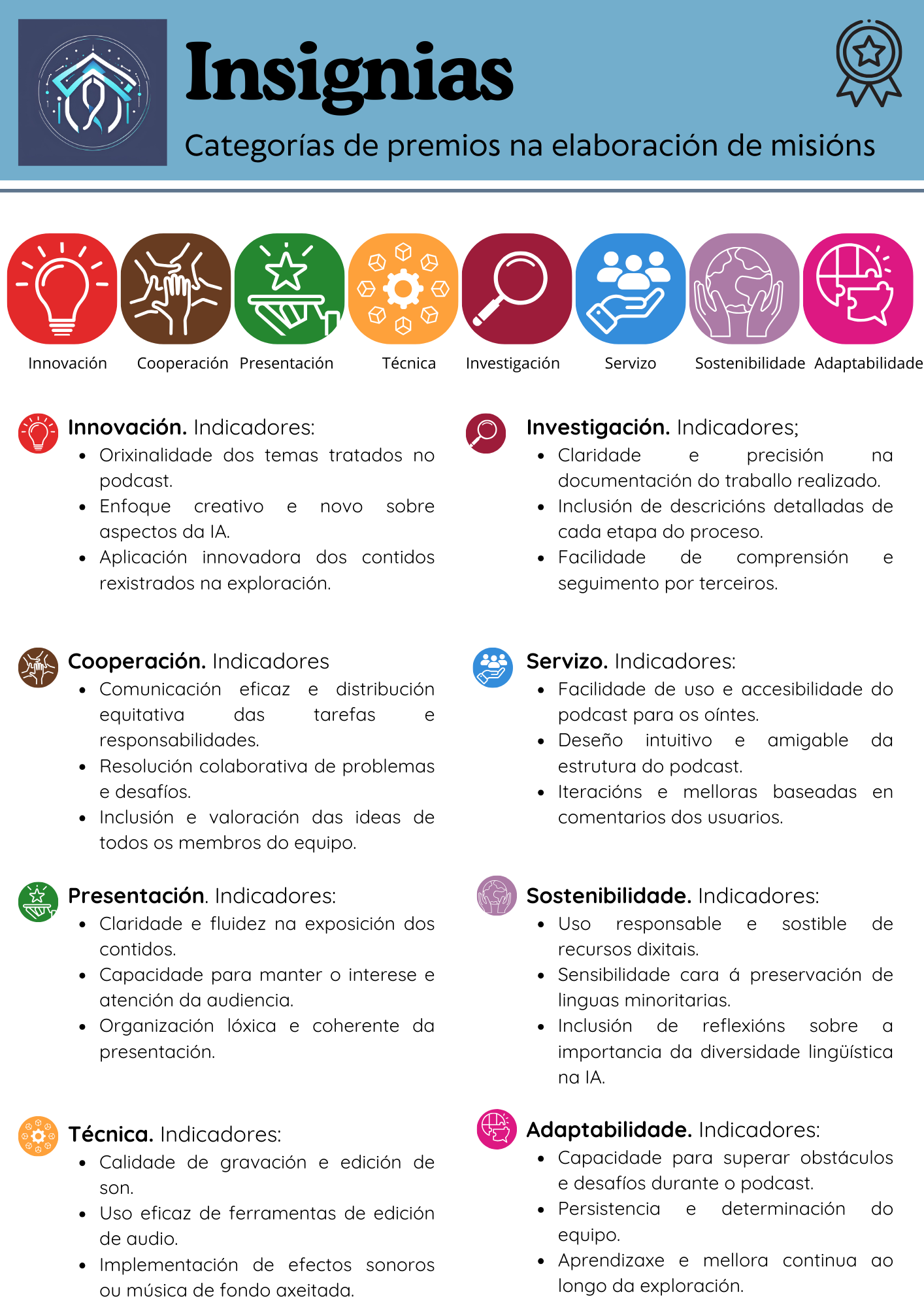 Unha vez rematada a elaboración do traballo é o momento de asignar as insignias acadadas no desempeño da vosa misión.