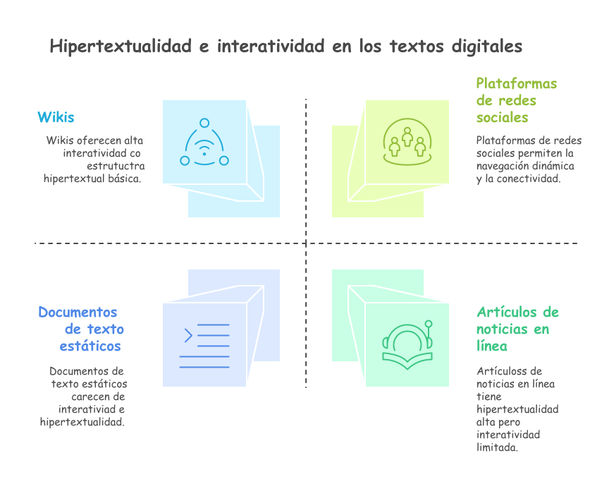 La oralidad, la escritura a mano o los libros impresos se organizan de forma lineal y secuencial, con un principio y un final claros. Hoy en día, la digitalización ha transformado la estructura de los textos, permitiendo que no solo se lean, sino que también se interactúe con ellos. Internet nos ha acostumbrado a desplazarnos de una información a otra mediante enlaces, imágenes, vídeos y otros formatos que enriquecen el contenido y modifican la manera en que lo comprendemos.
