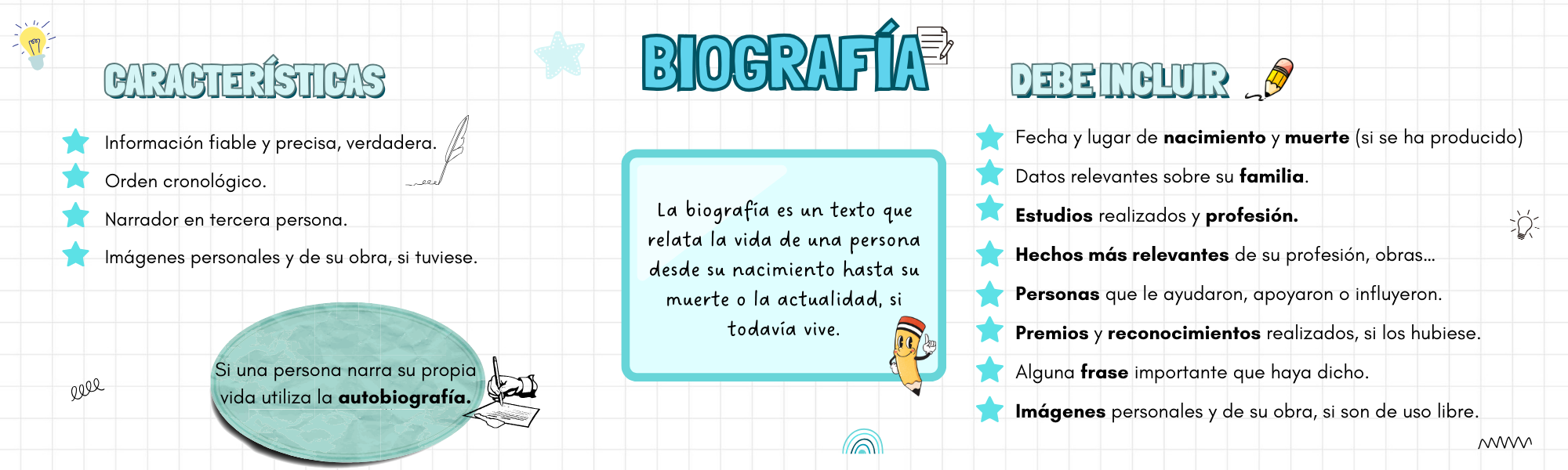 La biografía es un texto que relata la vida de una persona desde su nacimiento hasta su muerte o la actualidad, si todavía vive.