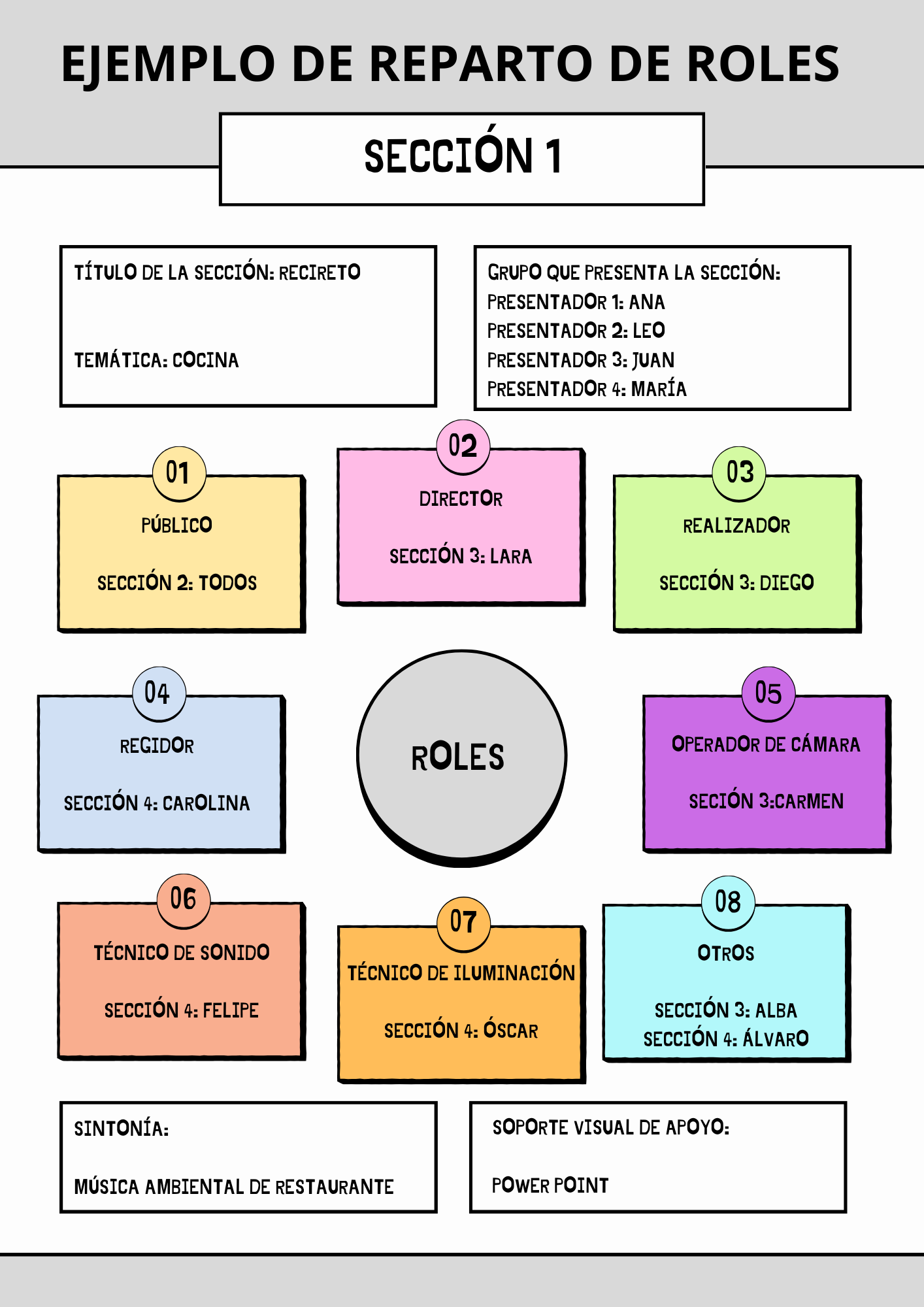 En el programa de televisión, cada uno desempeña un rol importante para contar las noticias.