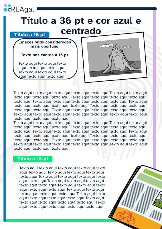 REA da materia de Lingua Galega e Literatura de 5º de EP. Ten a súa correspondencia coa unidade didáctica 3 facilitada en PROENS pola Consellería de Educación, Ciencia, Universidades e Formación Profesional. Xunta de Galicia. Nesta situación de aprendizaxe o alumnado deberá elaborar os seus propios textos escritos para describir actividades levadas a cabo dentro ou fóra do centro. Dende o clima de convivencia da súa aula, pasando polo correcto uso dos equipamentos EDIXGAL ata dar a coñecer as actividades realizadas. |