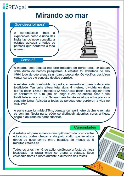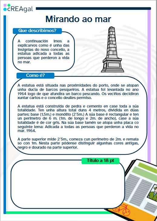 Comezades o deseño do voso texto descritivo! A continuación veredes, paso a paso, unha pequena guía que vos axudará a facer e construír o voso texto do lugar ou obxecto da vosa vila que queirades explicar. Estades preparados?
