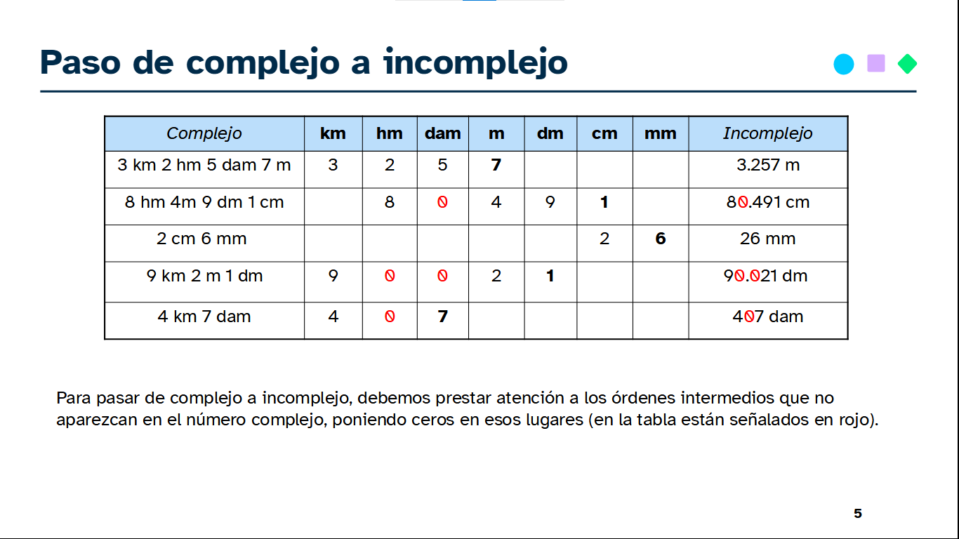 | Complejo | km | hm | dam | m | dm | cm | mm | Incomplejo |