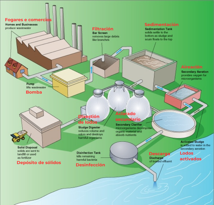 - Tratamento adecuado das augas residuais, tanto urbanas como industriais.