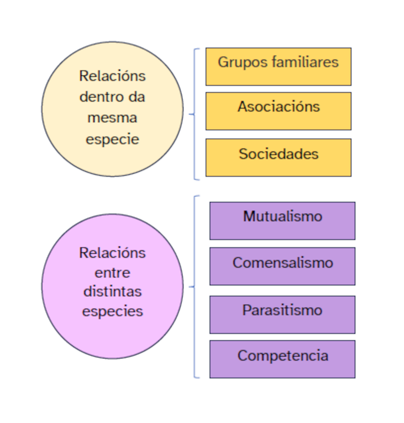 Trátase de relacións temporais entre animais da mesma especie, que se agrupan por un obxectivo común, que pode ser defenderse, viaxar ou alimentarse.