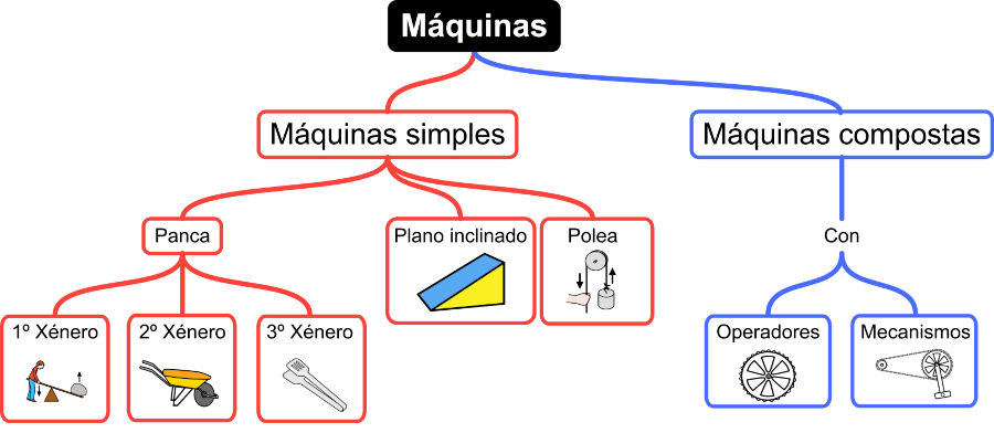 Ao longo do día realizamos multitude de tarefas nas que están presentes as máquinas. Un teléfono, unha bicicleta ou un coche, son máquinas, pero tamén son máquinas un coitelo, unhas tesoiras ou unha carretilla. Podemos diferenciar dous tipos de máquinas segundo a súa complexidade: máquinas simples e máquinas compostas.