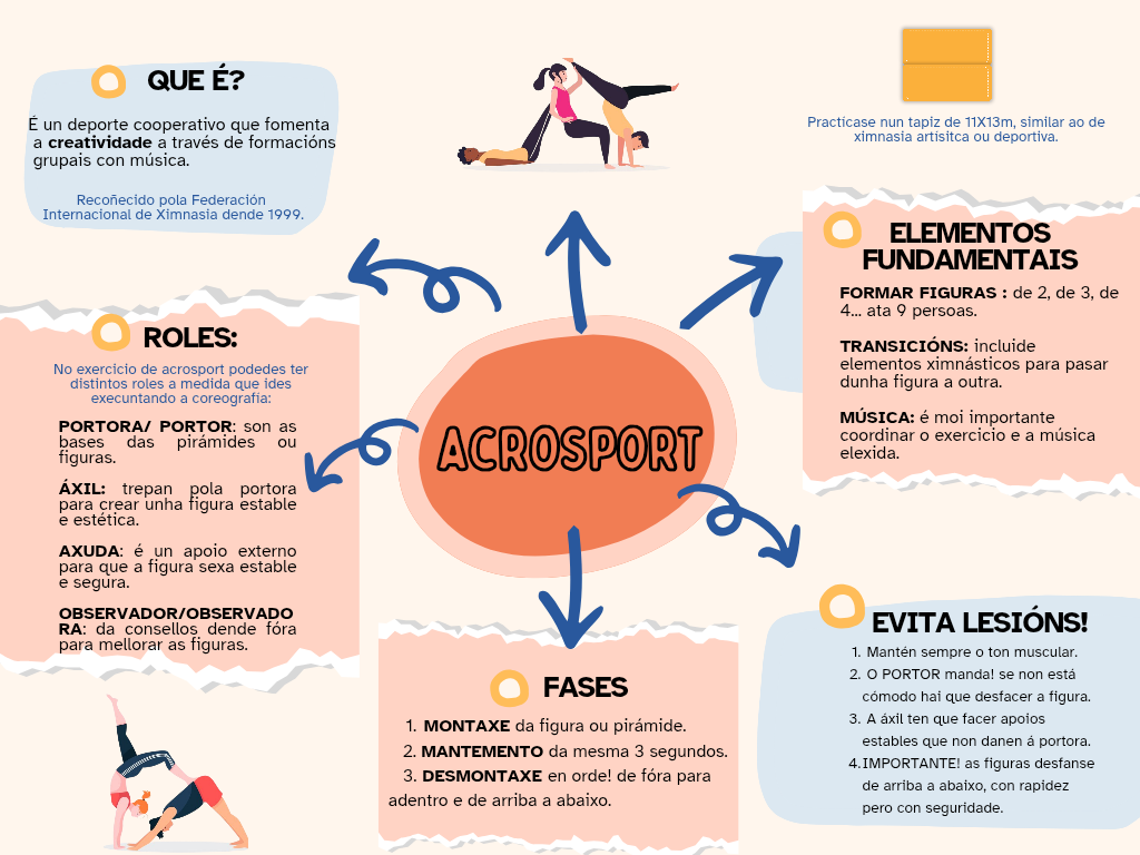 O acrosport ou ximnasia acrobática parécenos un recurso divertido, fácil e vistoso para que usedes na coreografía final. Trátase de facer figuras e pirámides... atrevédesvos?