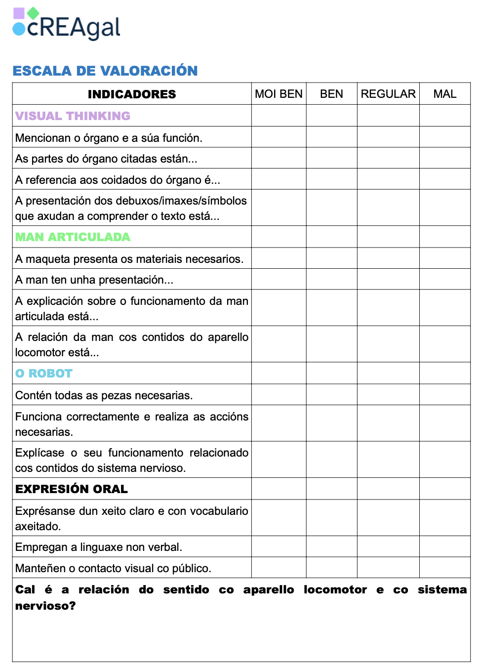 A mestra explicounos en que consistía a escala de valoración para puntuar o noso traballo.
