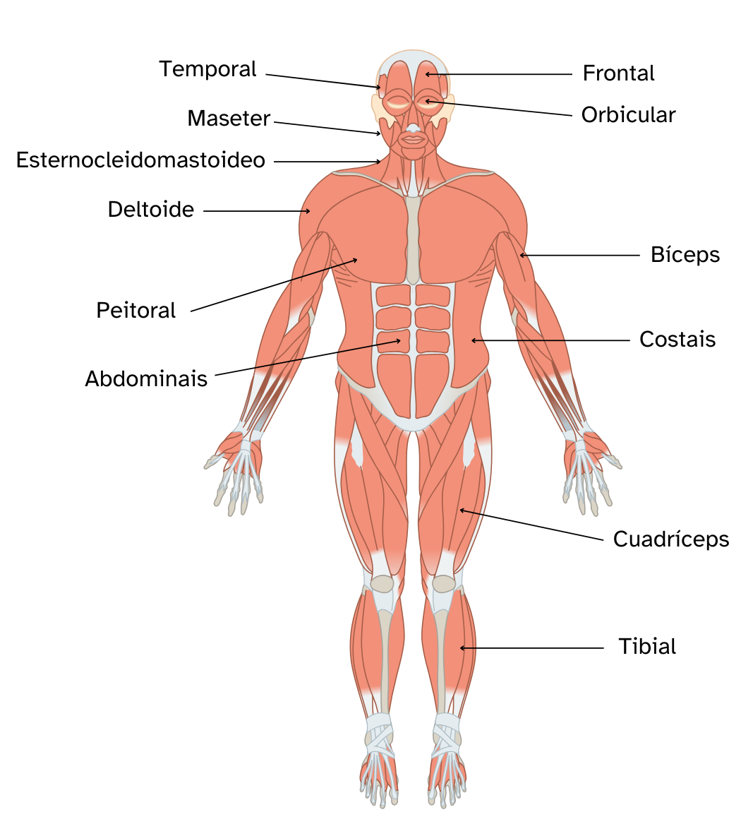 ➡ Agrúpanse en tres tipos: músculos _________________, músculos _________________ e músculo ___________________.