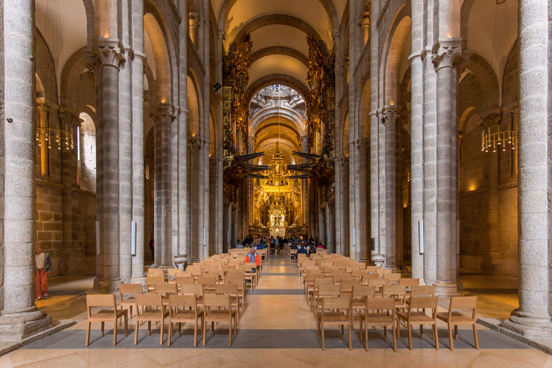 O artesoado está no teito da catedral.